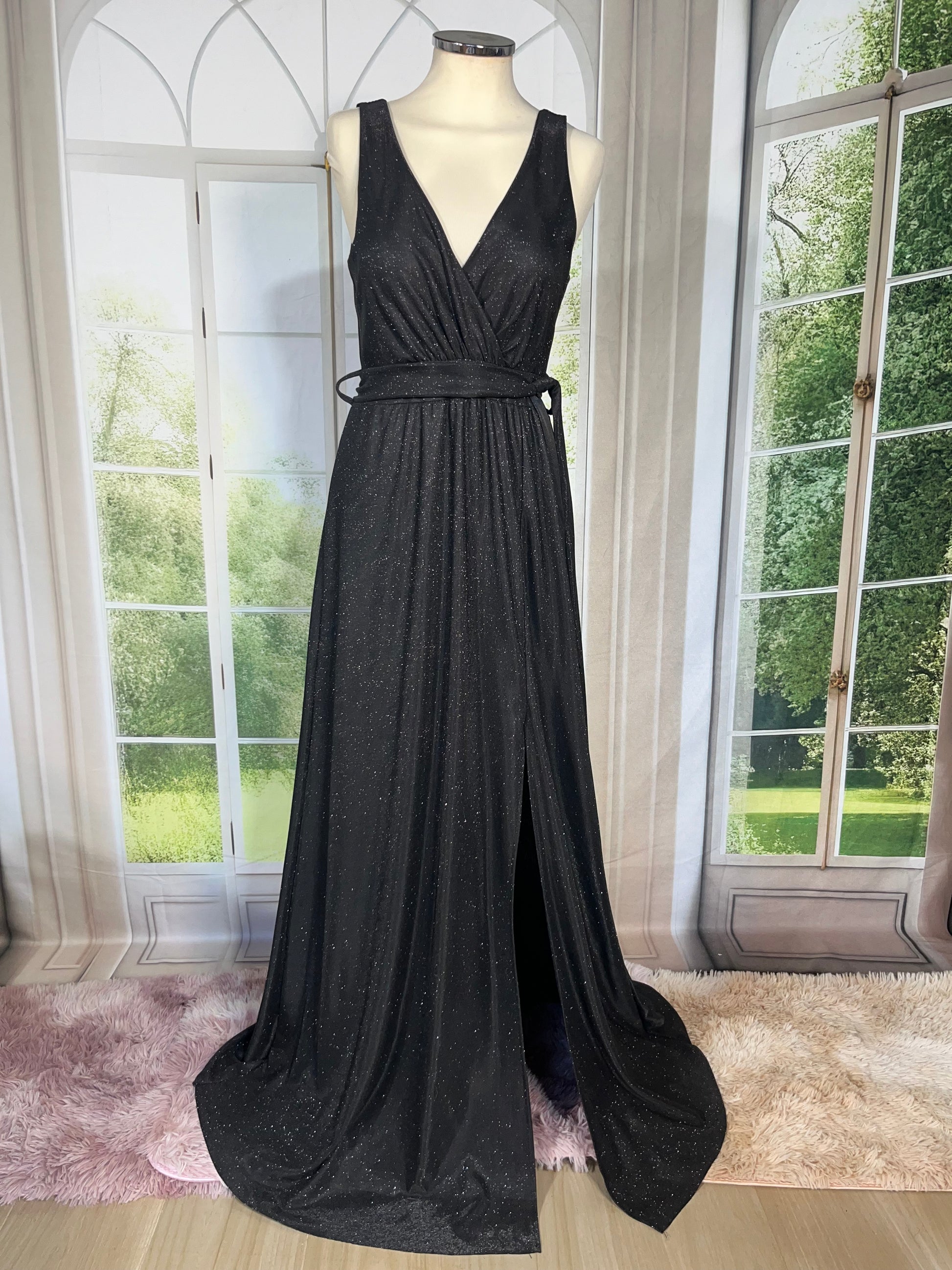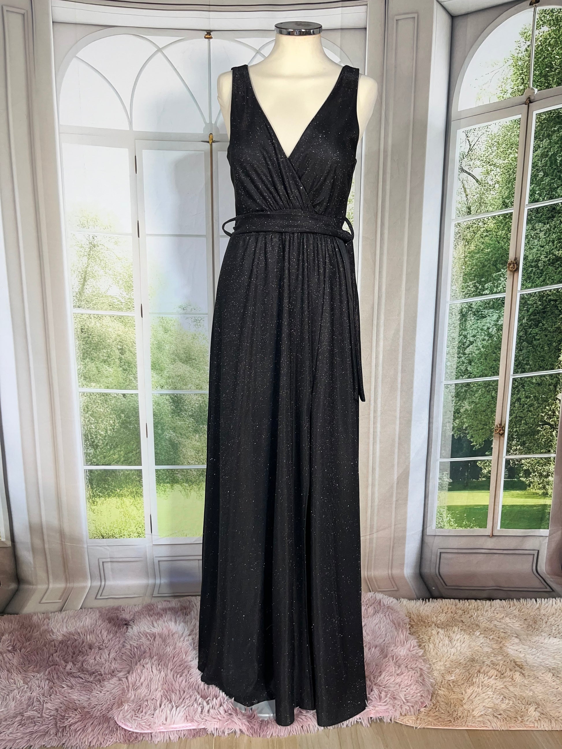 Abito in lurex fondo nero zip chiusura e cintura