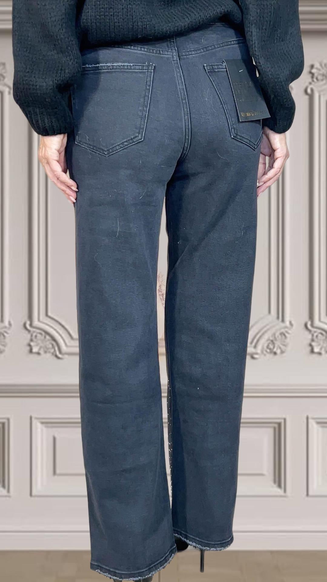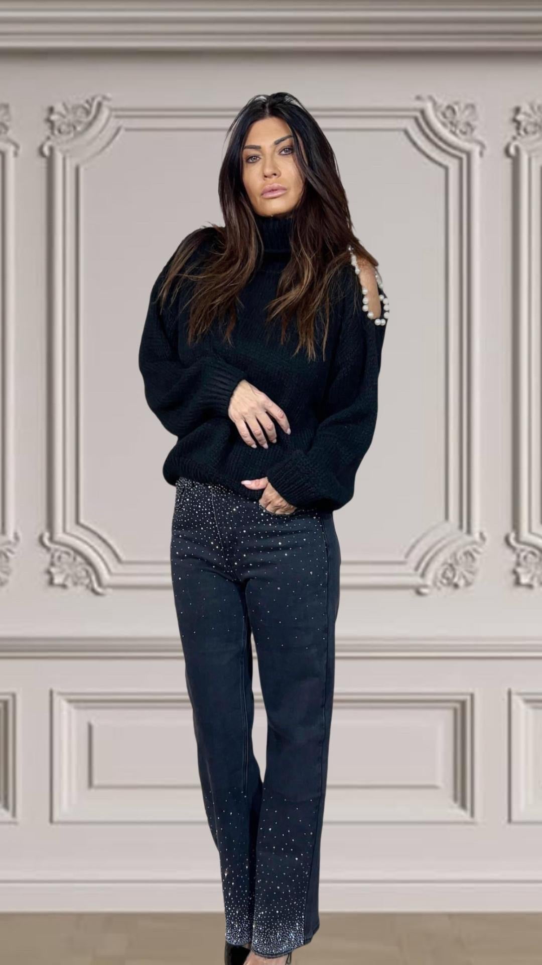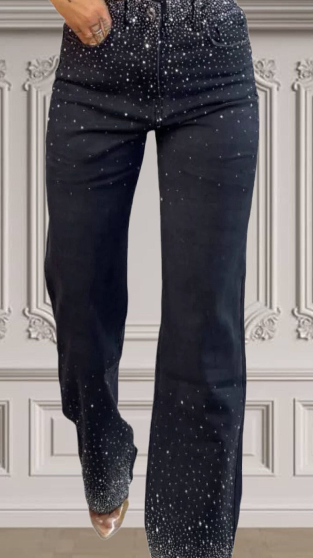 Jeans Nero con Brillantini sfumato parte superiore e fondo gamba .